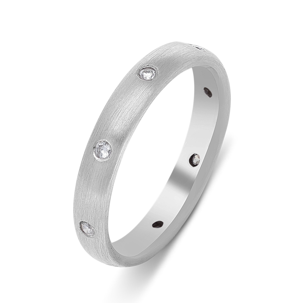 The diamonds are seamlessly set into the band, giving the band a glittering appearance. The diamonds are perfectly spaced and angled to catch the light from every angle, creating a breathtaking display of sparkle and brilliance.