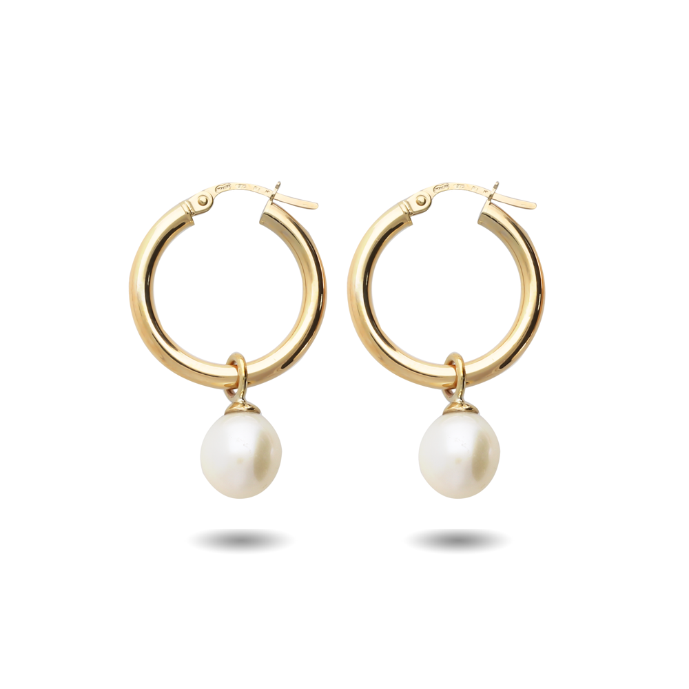 A pair of 9ct yellow gold “pretty woman – inspired” creole hoop earrings with freshwater pearls.