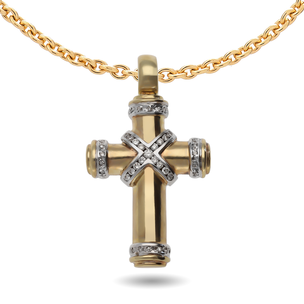 A 9ct gold bold statement cross pendant accented with diamonds.