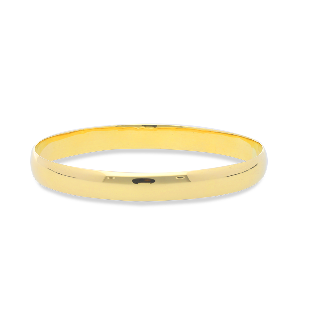 A 9ct yellow gold classic round solid bangle approximately 8mm in width with a d-shape cross-section completed with a high-shine finish.