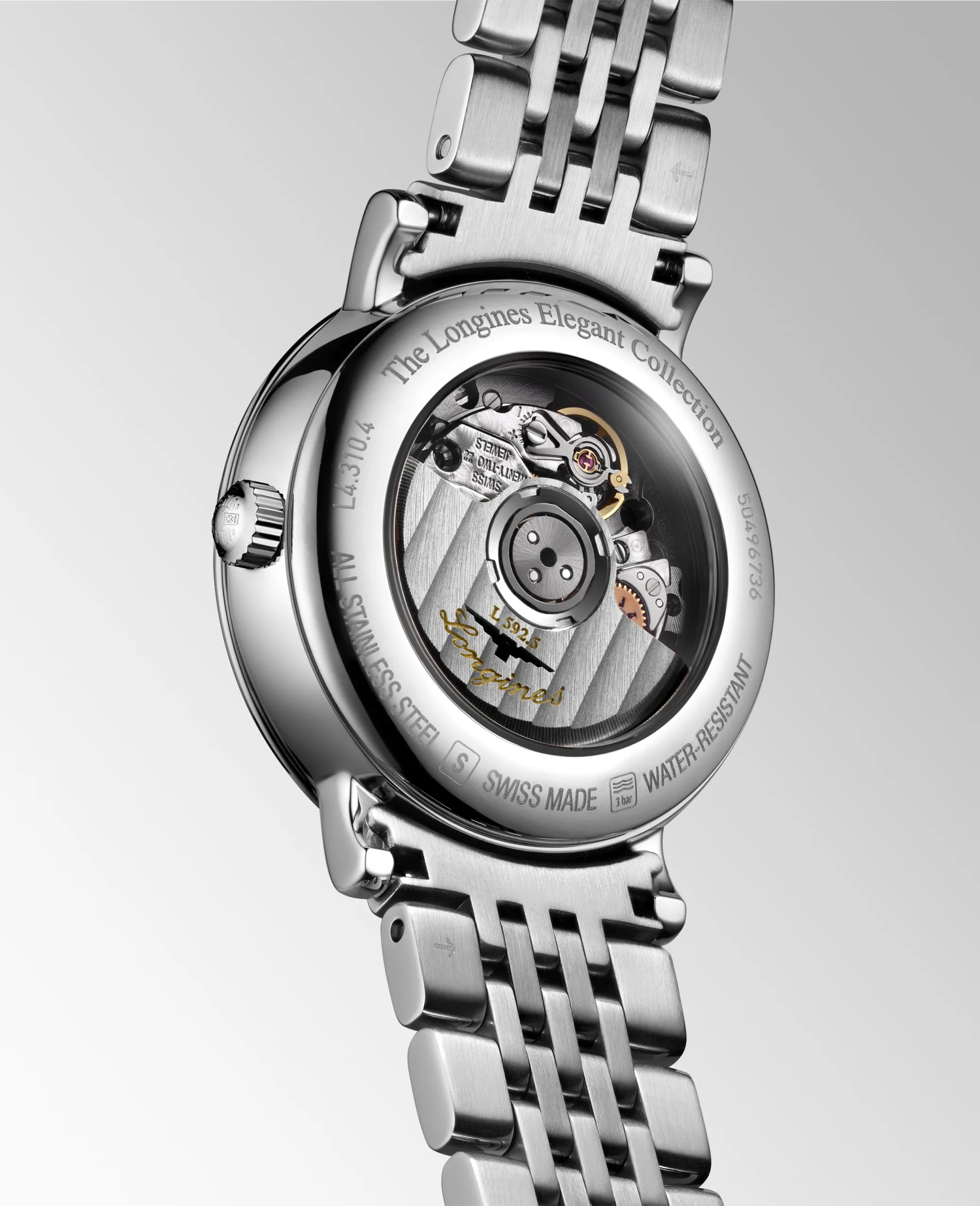 The Longines Elegant collection epitomizes superior timekeeping and celebrates the best of the St Imier-based brand’s craftsmanship. This lady’s model measures a 30mm diameter and has been crafted from stainless steel. The perfectly round case and bezel hold an impeccable automatic movement at its center.