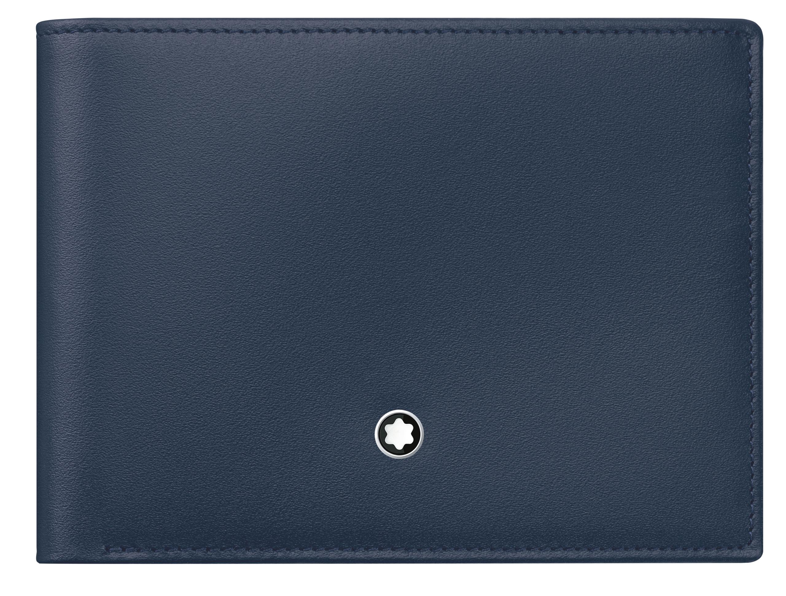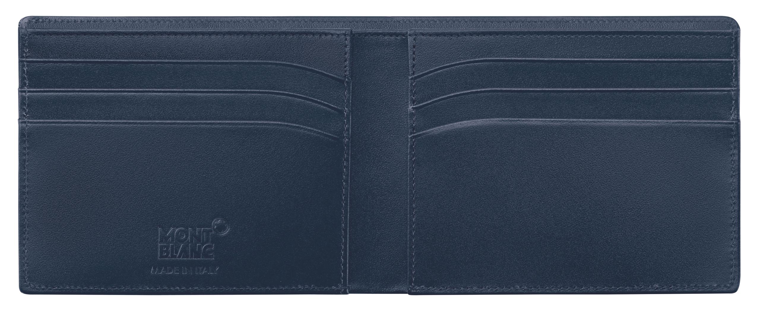 The Meisterstück leather wallet 6cc made of black full-grain cowhide, jacquard lining with Montblanc brand name and Montblanc emblem with palladium-coated ring features 6 pockets for credit cards, 2 compartments for banknotes and 2 additional pockets. With these qualities the Meisterstück full-grain leather wallet is the ideal companion in everyday life, reflecting the long traditions of crafting products with researched material and skilled artisans.