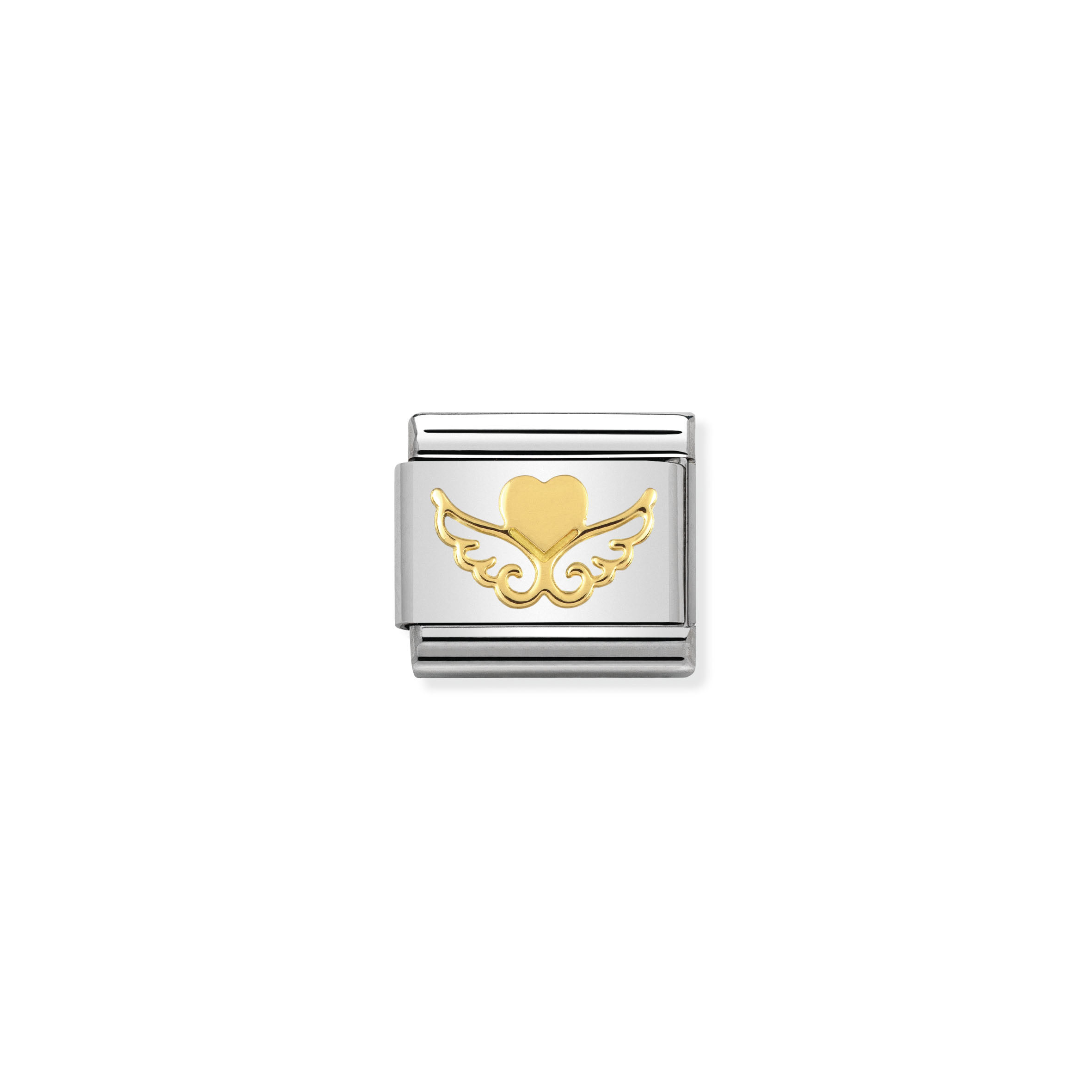 Charm for Original Classic Composable Bracelet in stainless steel and 18K gold with Heart with Wings. Charm from the My Angel Composable Collection. Made in Italy. Let your love soar!