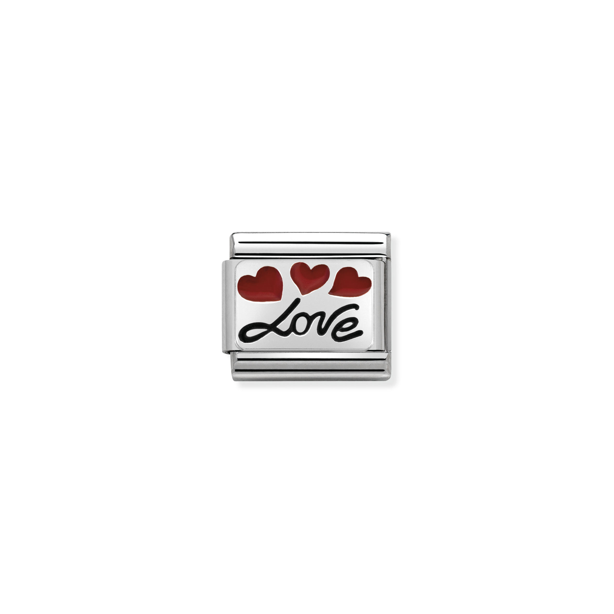 Classic Charm for Original Classic Composable Bracelet in stainless steel, sterling silver and enamel with Love writing in italics. Made in Italy. Say “I love you” with a beautiful Charm.