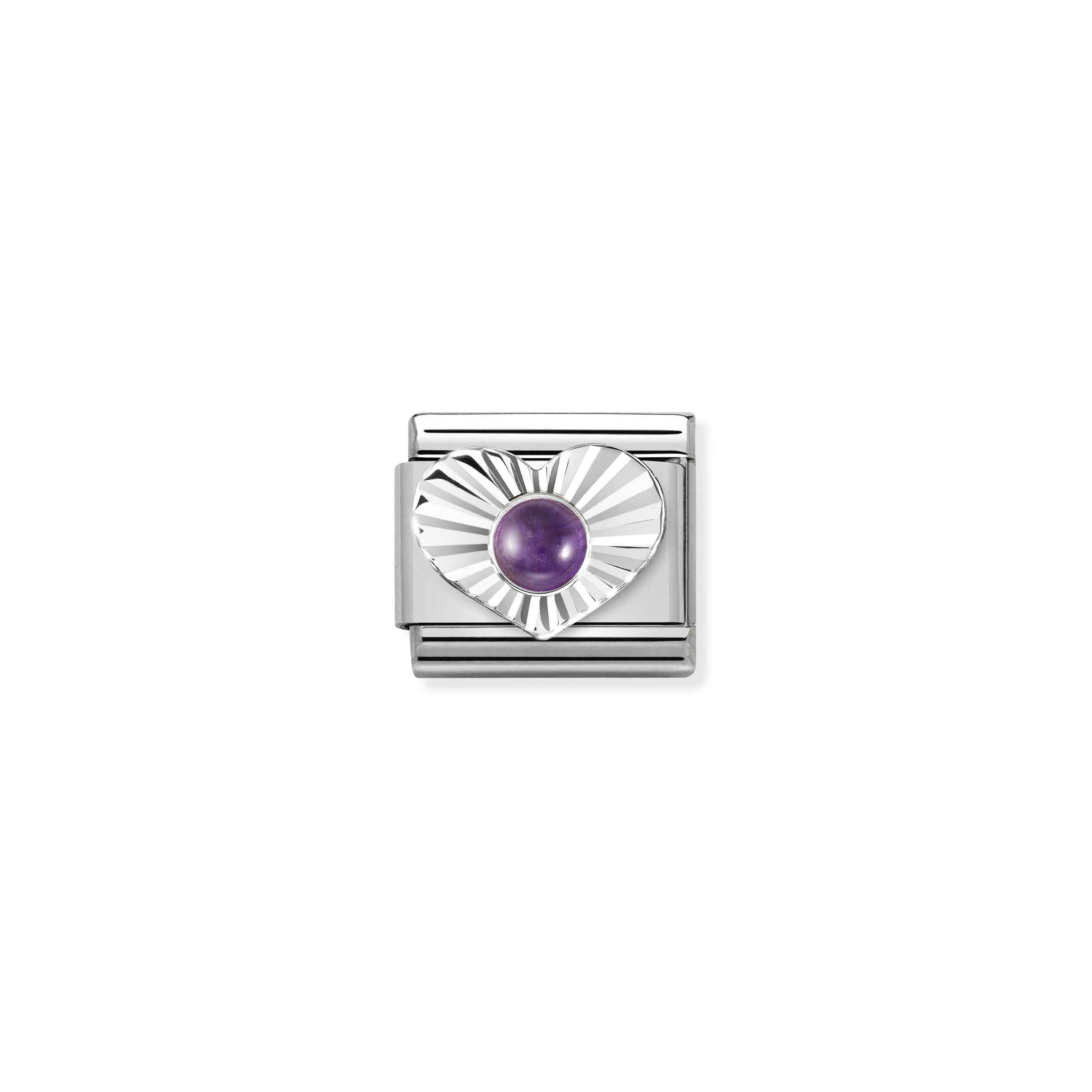 Original Nomination Link for Composable Classic Bracelets in stainless steel with sterling silver Heart and Amethyst. Made in Italy. This stone is known for bringing harmony so it is the perfect gift for that someone who is balanced and responsible.