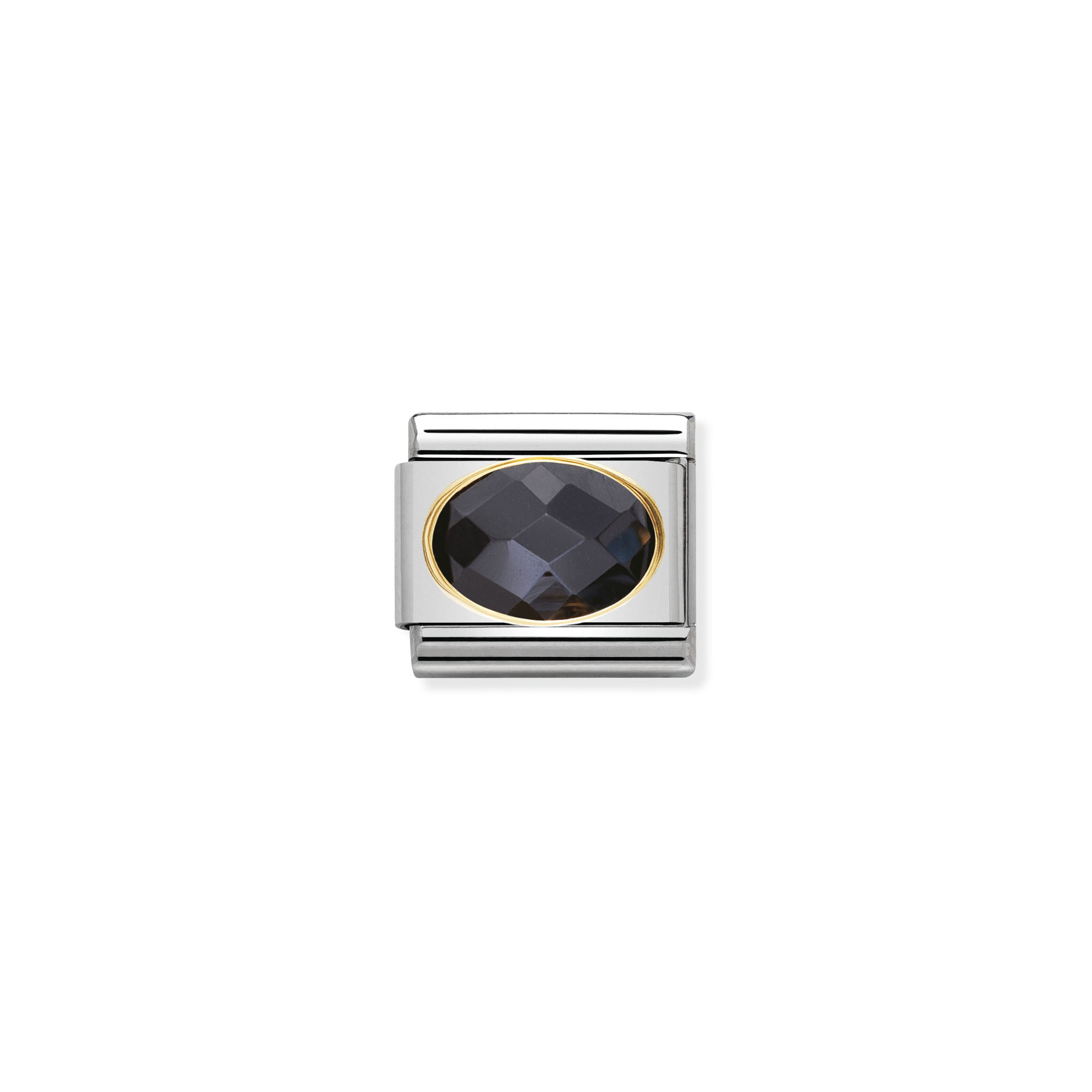 Classic Charm for Original Composable Bracelet in stainless steel, 18K gold with black Cubic Zirconia. Also available in other coloured stones, oval in shape. Made in Italy. For the chic and sophisticated woman.