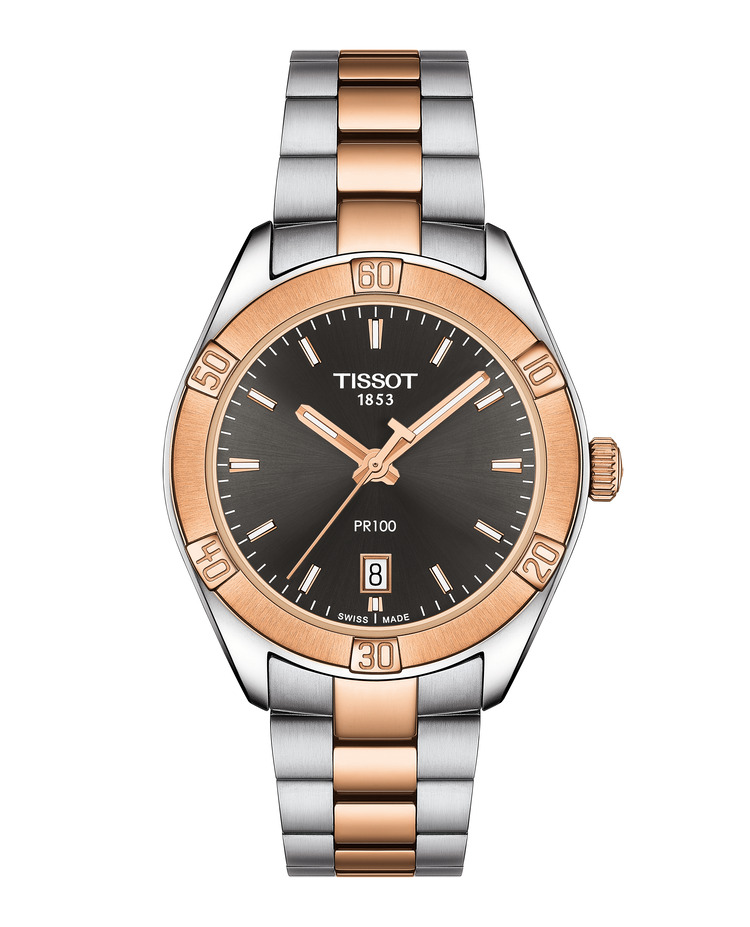 The Tissot PR 100 is a classic watch destined to be worn often and for every occasion. It features the simple and elegant face the collection is loved for, with the pared-back aesthetic symbolising luxury, quality and classic style.